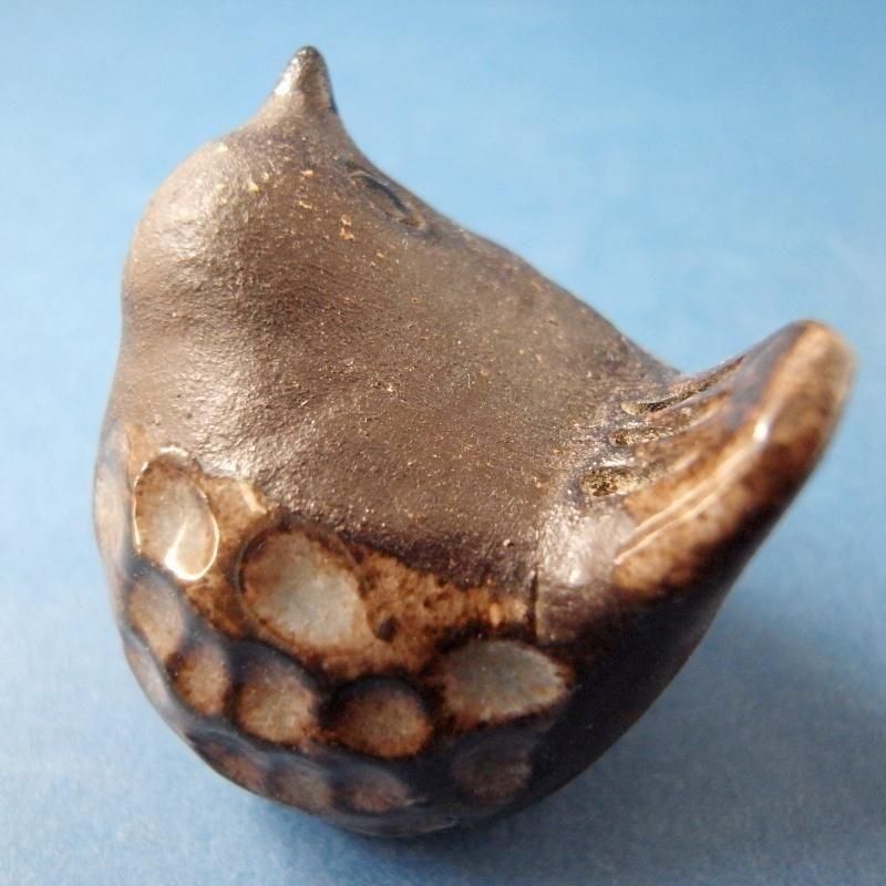 左右の羽根、くちばし、瞳、尻尾は、釉薬がかかっていて艶があります。