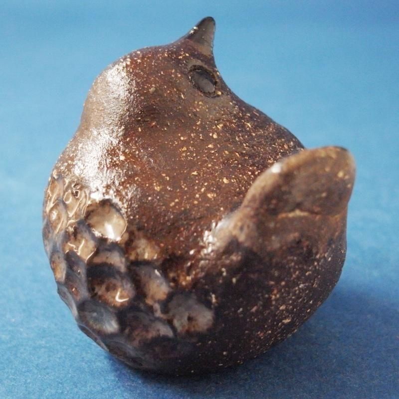左右の羽根、くちばし、瞳、尻尾は、釉薬がかかっていて艶があります。