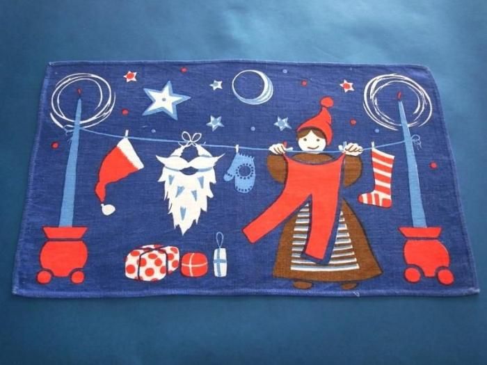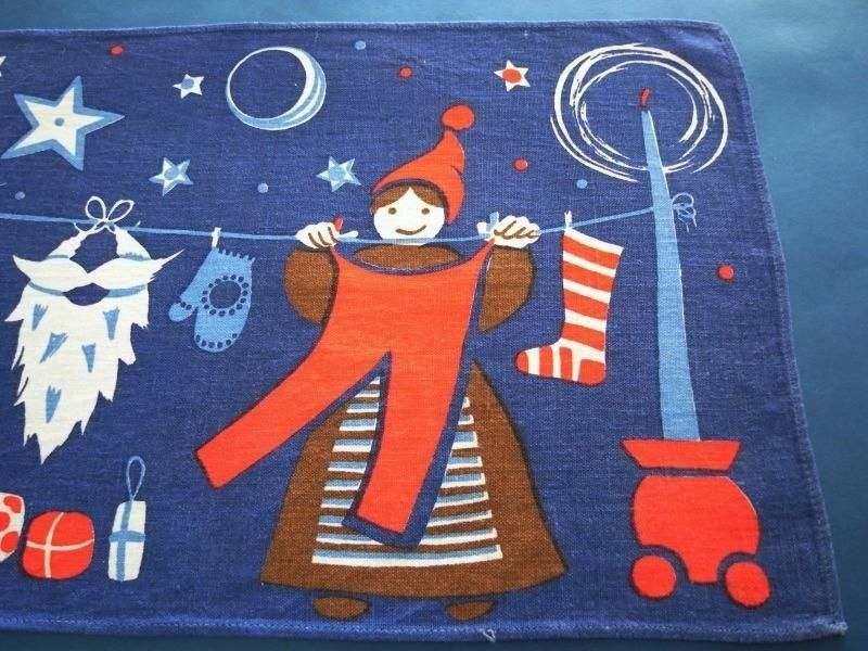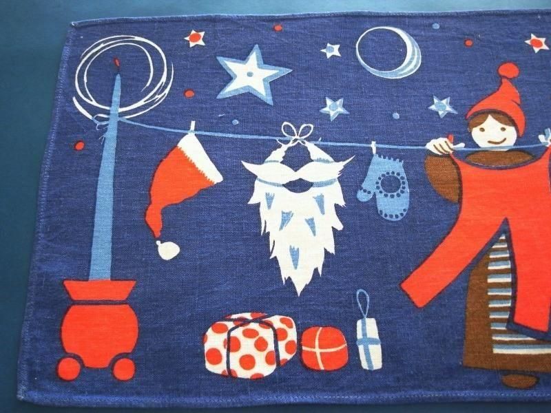 【サンタクロースの奥さんがクリスマスの準備?^^|約29.5x50cm|スウェーデンで見つけたクリスマスのヴィンテージクロス】
