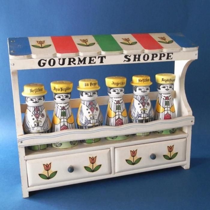 【Gourmet Shoppe|スパイス入れの男女と棚|スウェーデンで見つけたビンテージ】