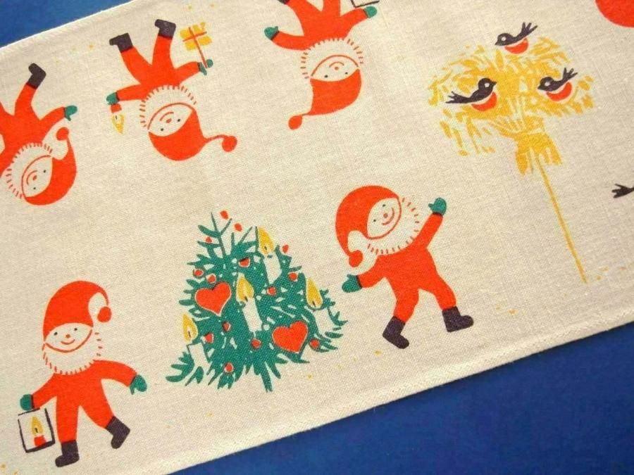 ・スウェーデンで見つけたクリスマス柄のヴィンテージクロス/ランナー/テーブルセンター。
